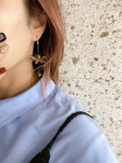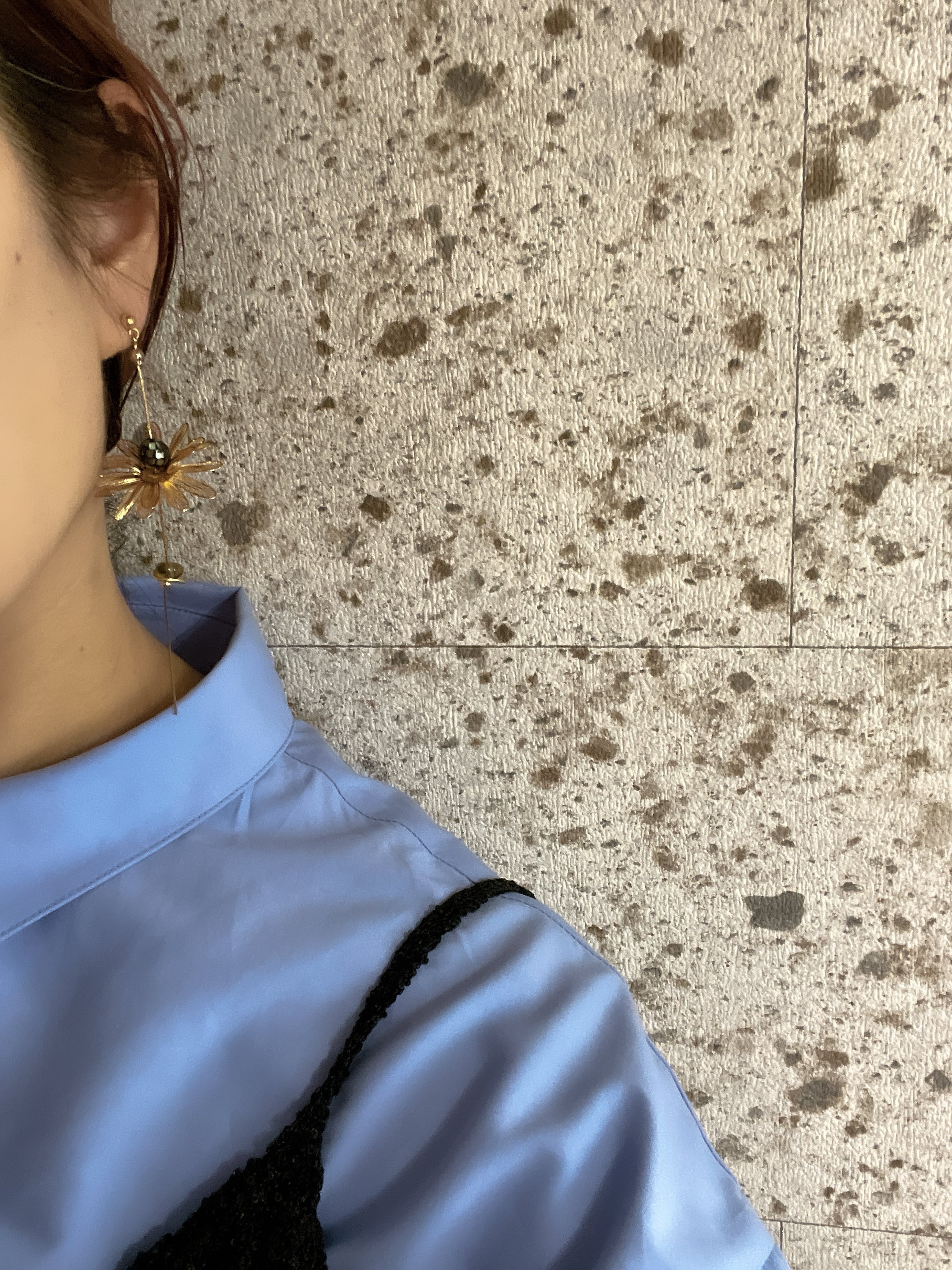 動きのある立体フラワーが顔周りにあり目をひく大振りデザイン。ですが軽い付け心地です。