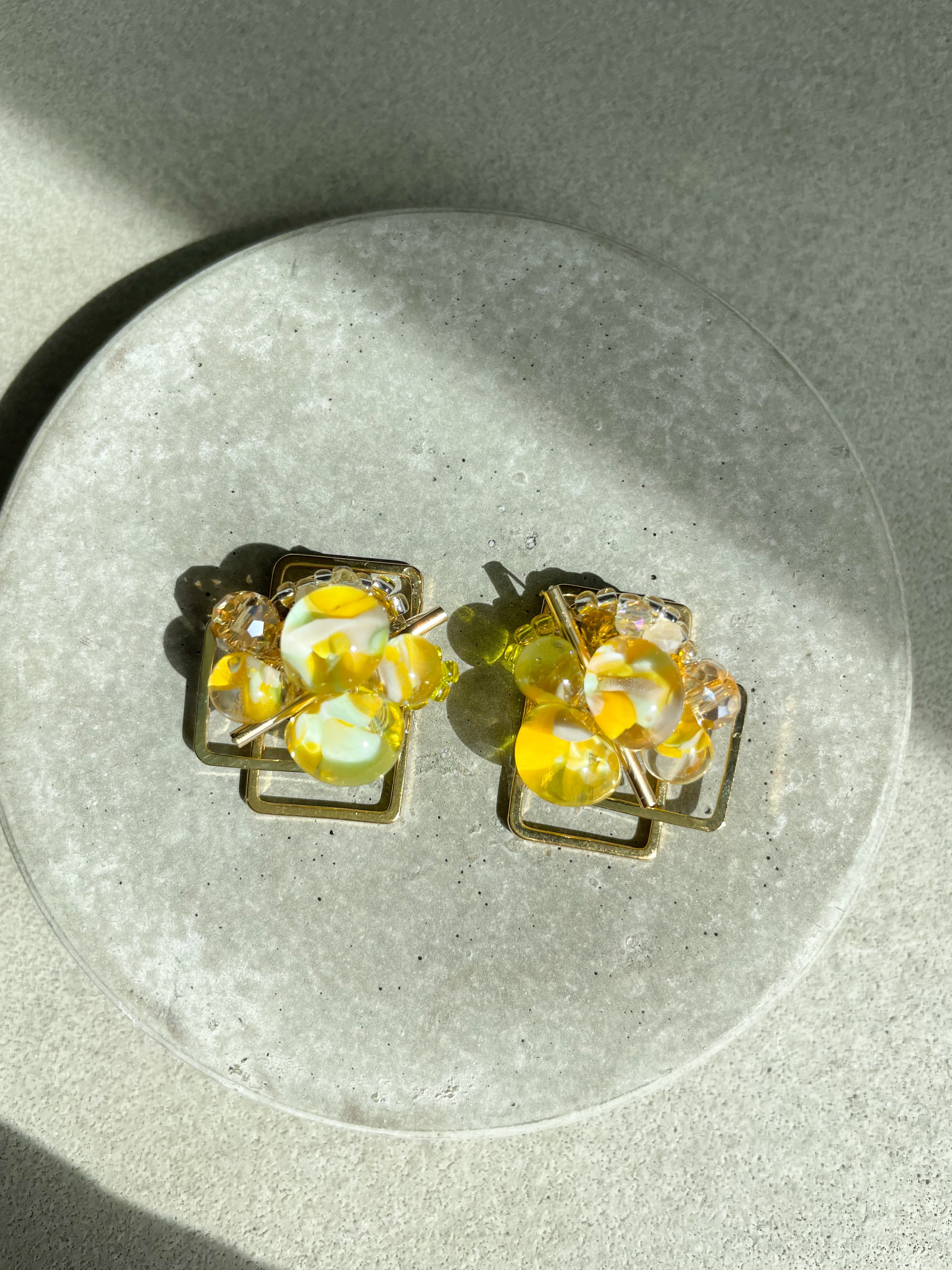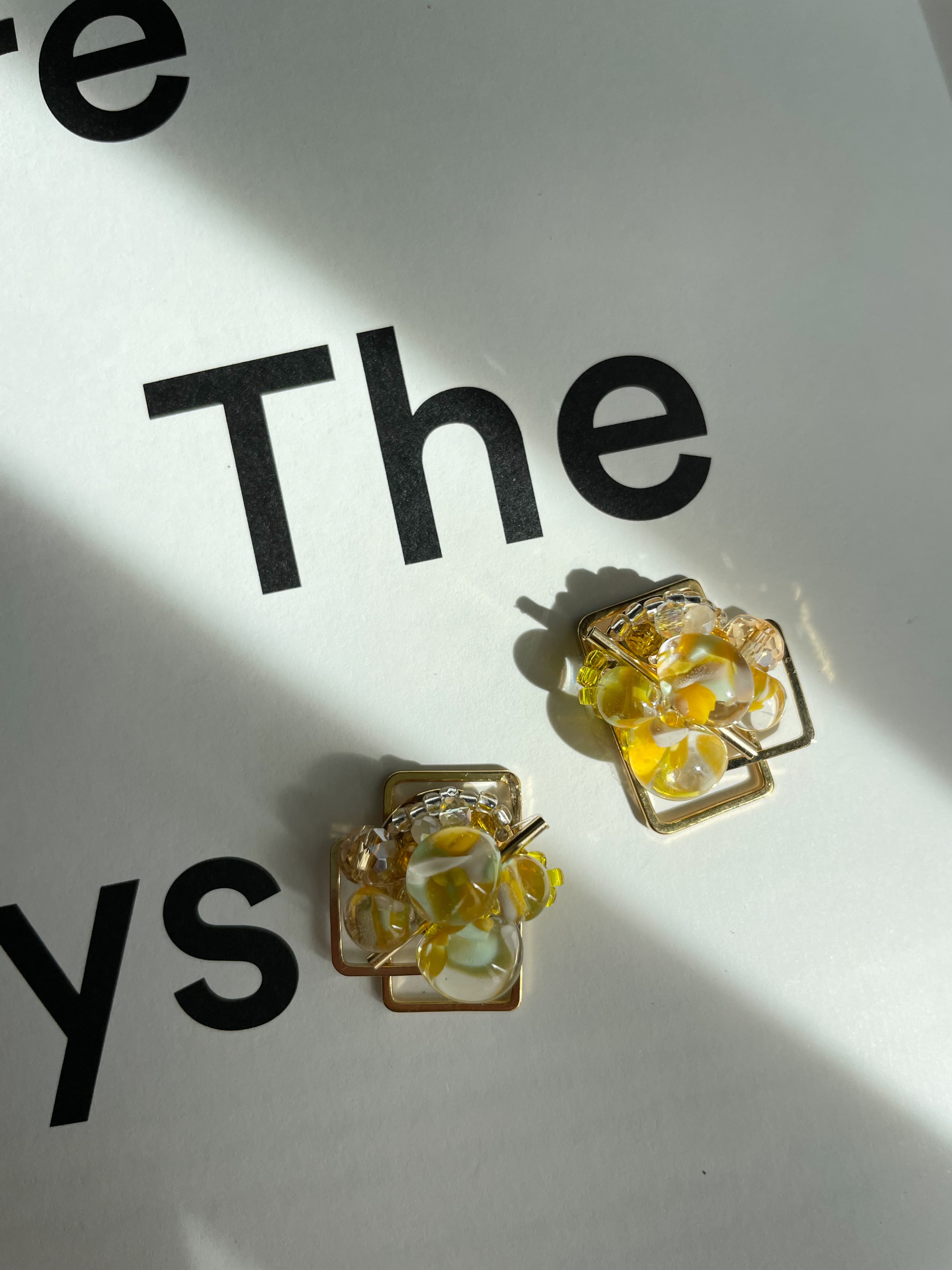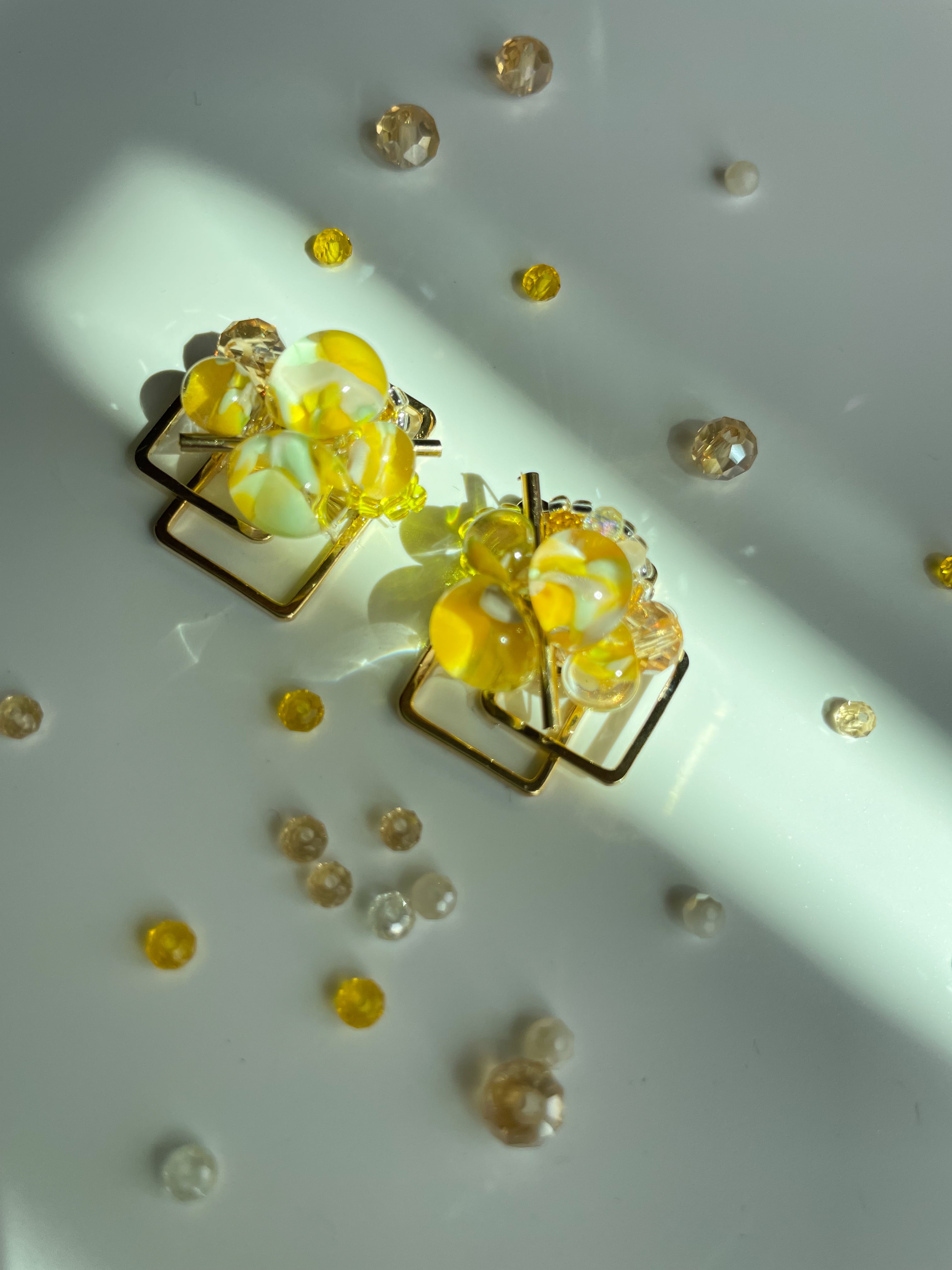メインのビーズはクリア、イエロー、ホワイトのグラデーションになっていてる珍しいインパクトのあるビーズです。