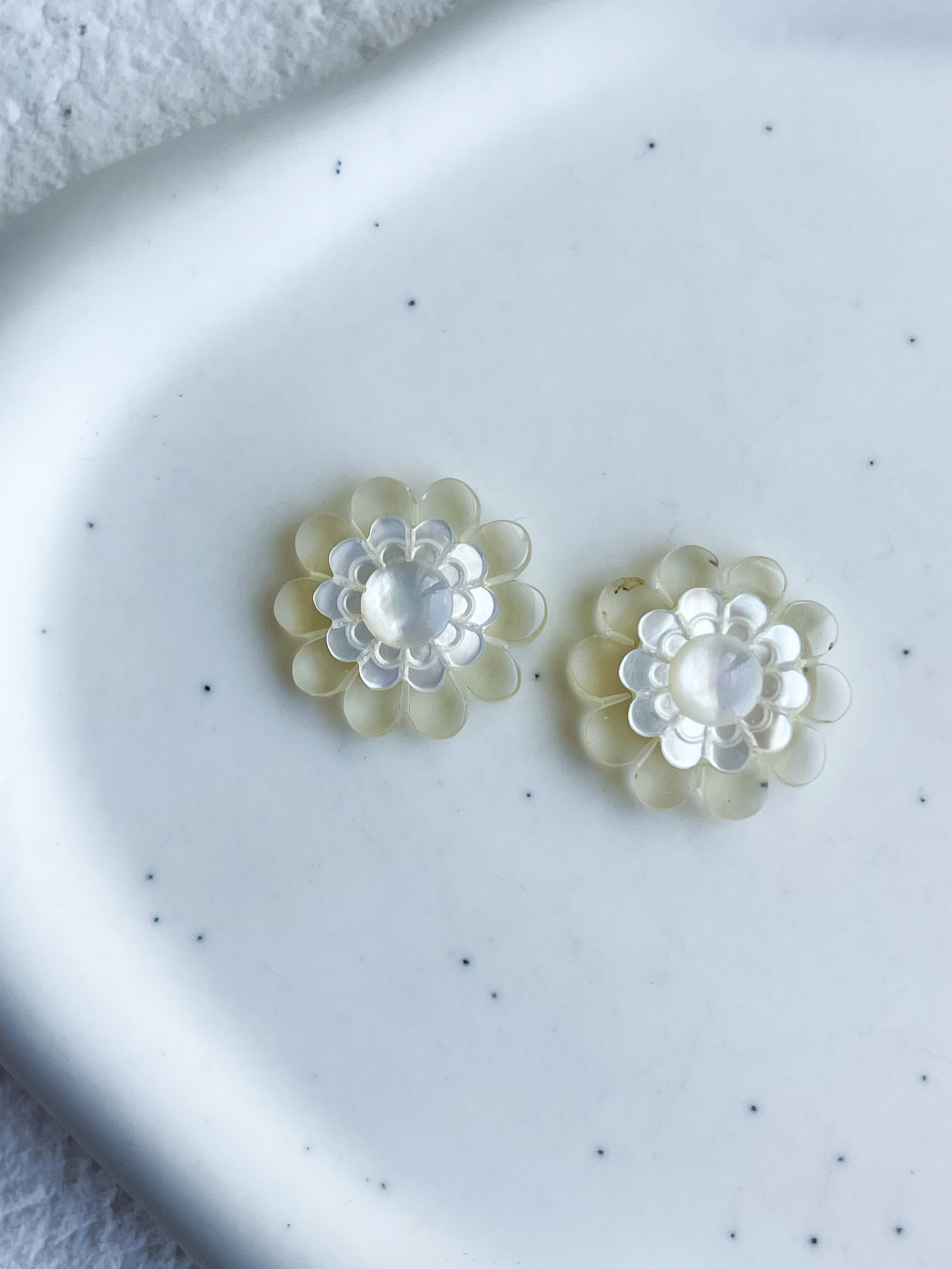 透け感のある黒蝶貝で濃淡があり大人の可愛らしさがあるボタンです。