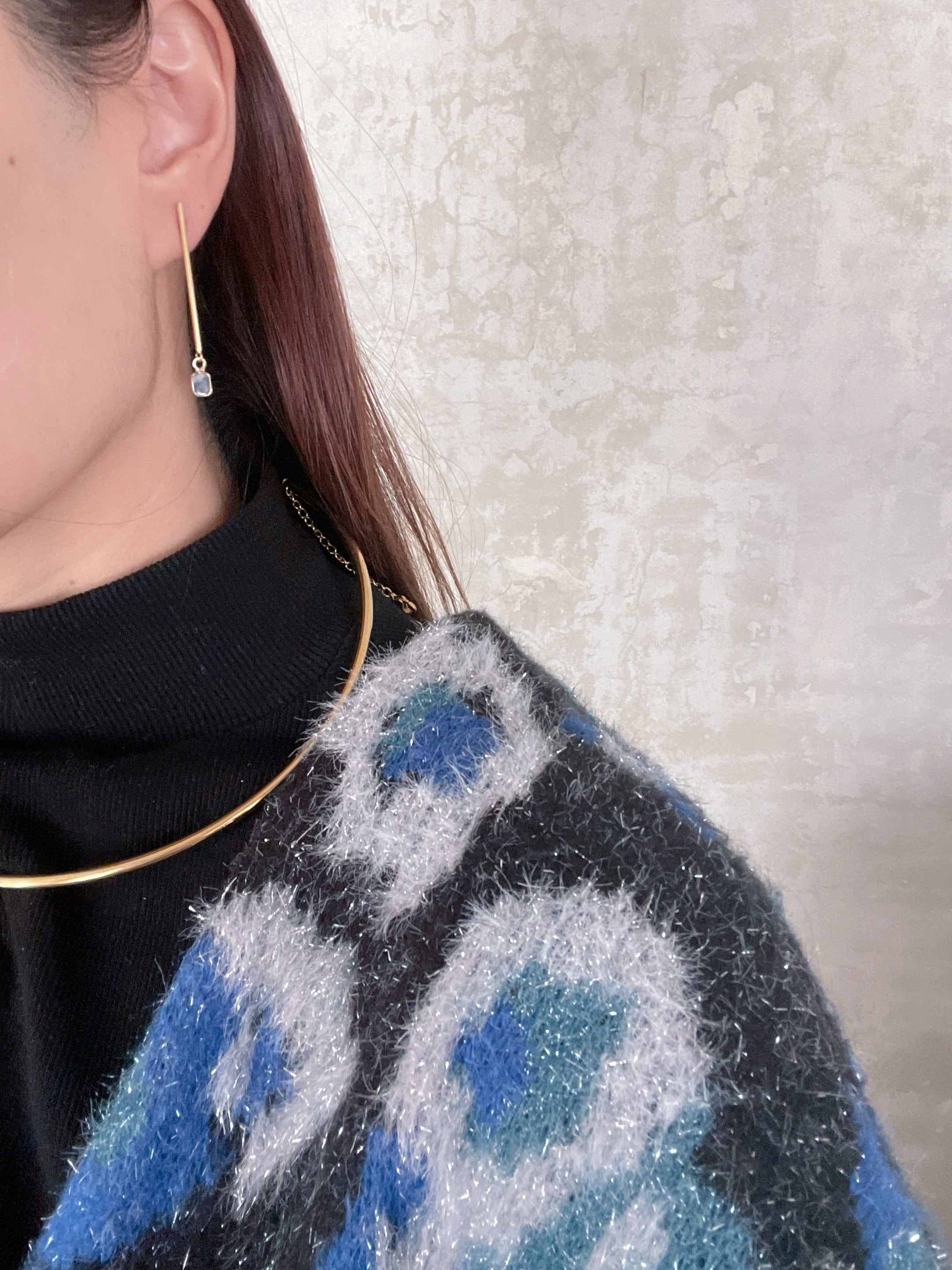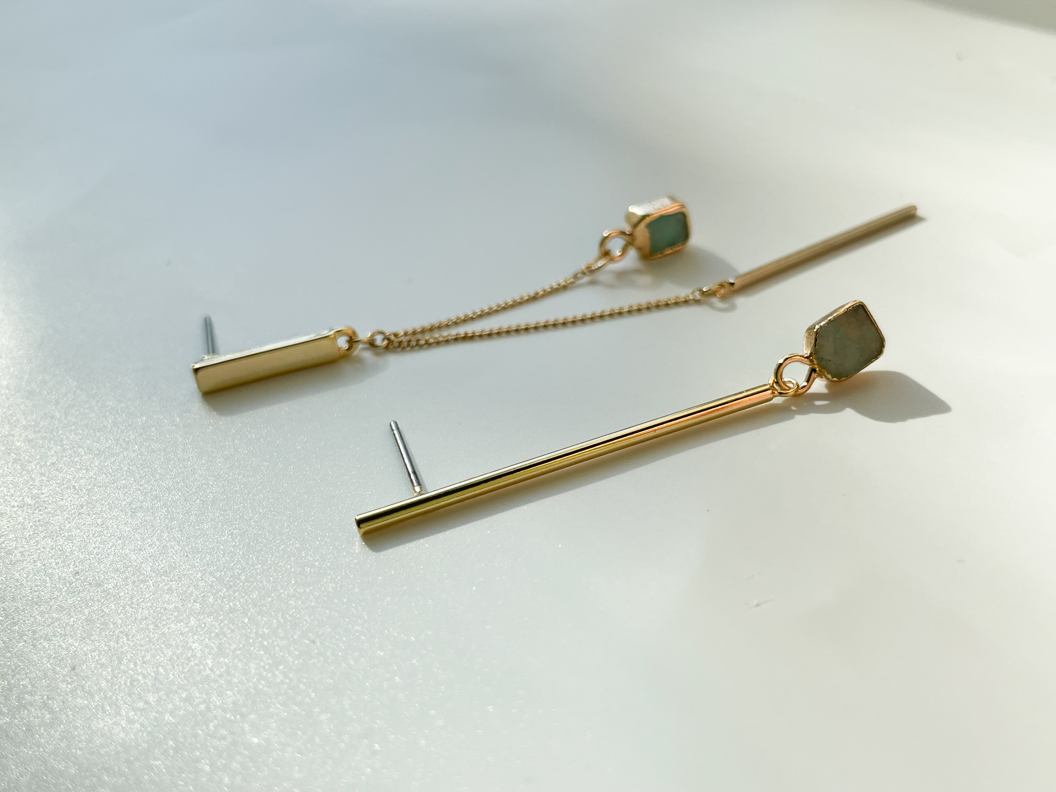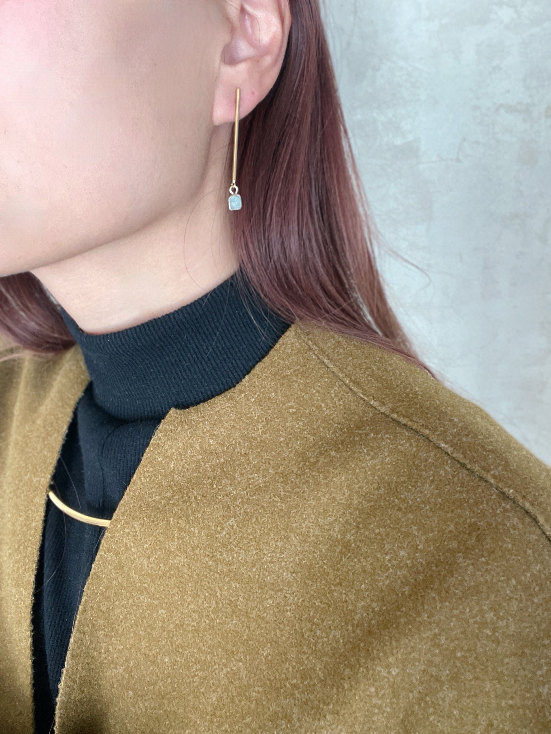 左右で異なるスティック形をトップに小粒の天然石でコーデにさりげなくcolorをワン