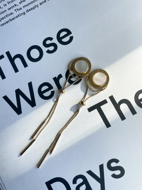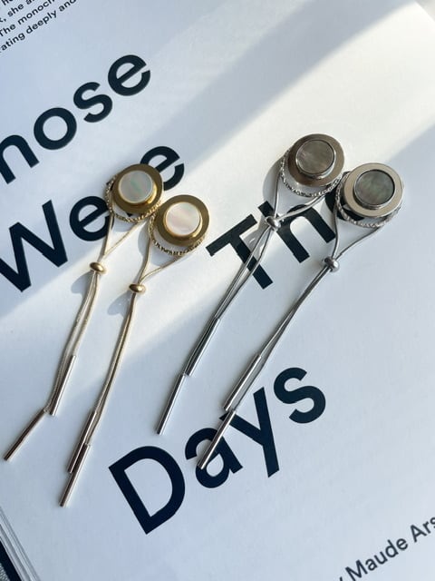 長めのチェーンで程よい揺れ感も楽しめ耳元で輝くシェルが顔周りを華やかにしてくれます。