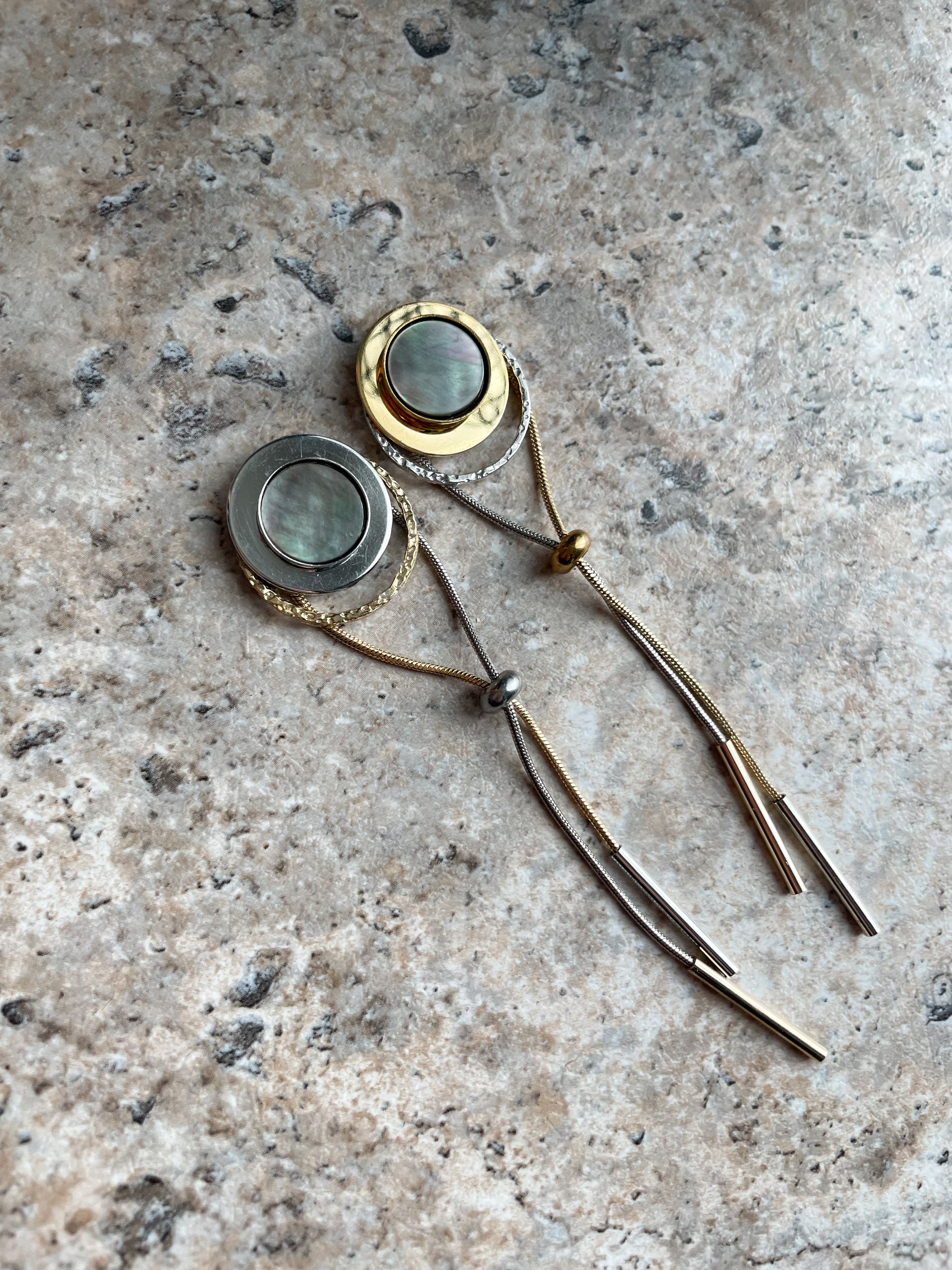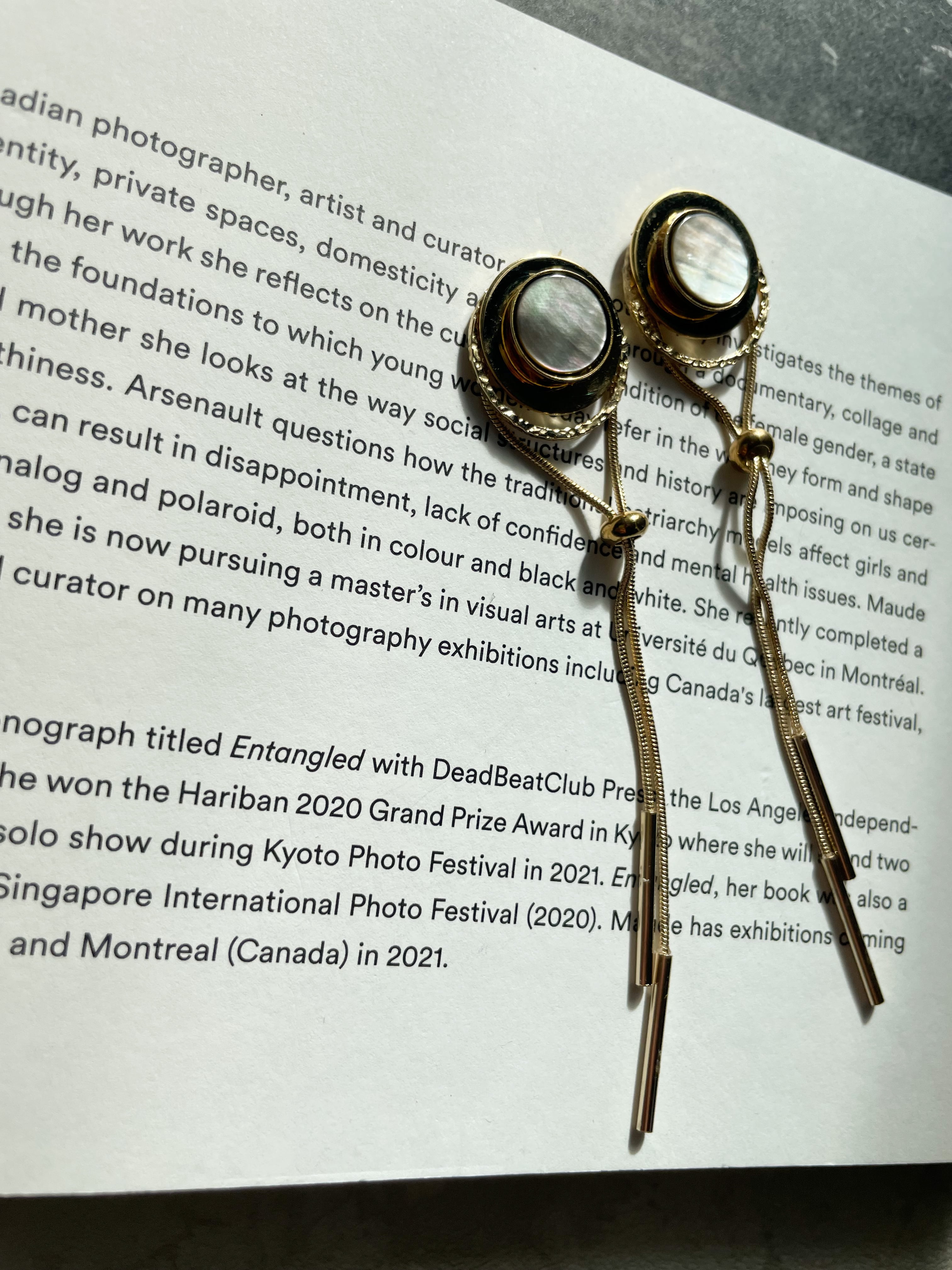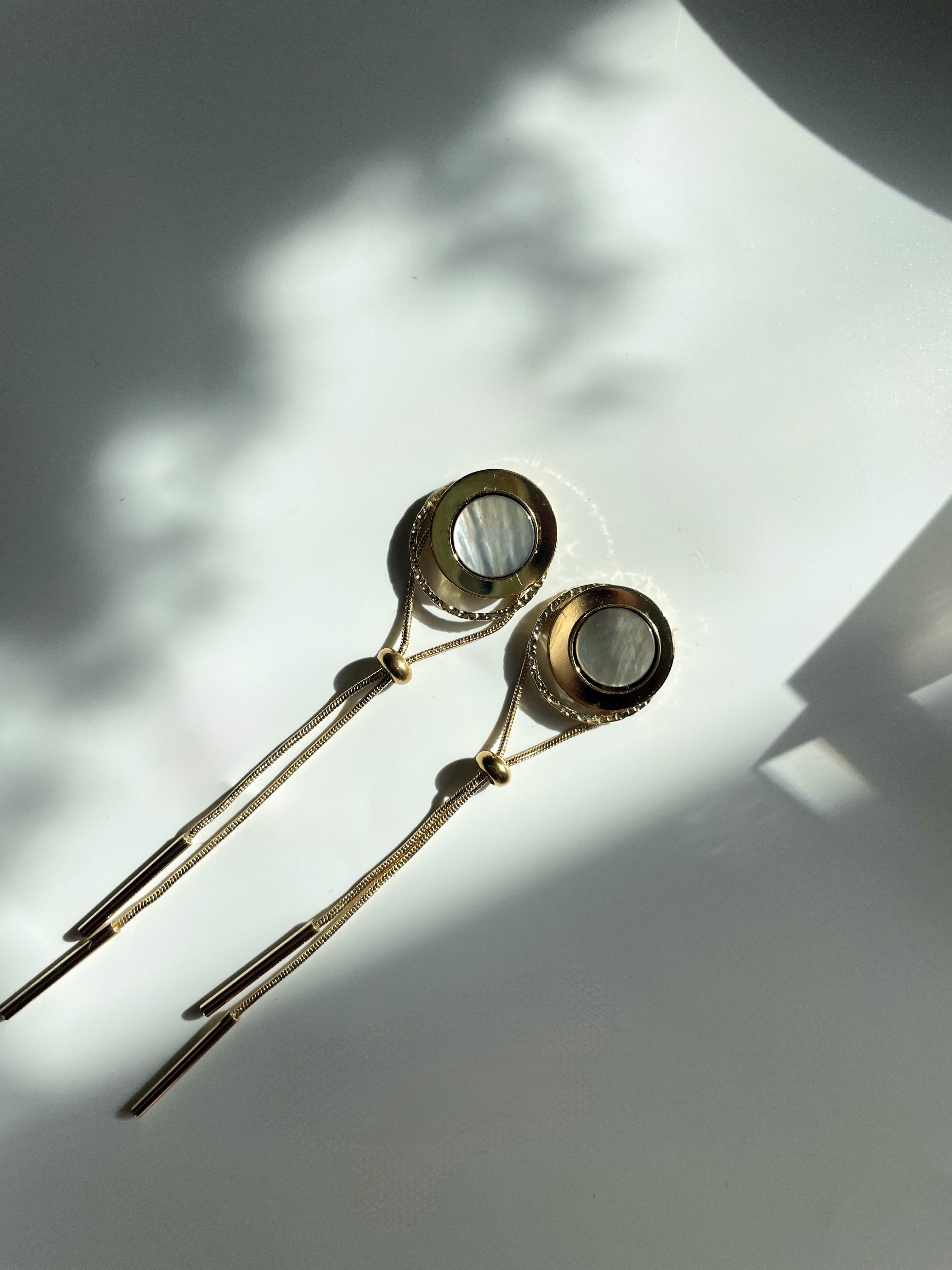 長めのチェーンで程よい揺れ感も楽しめ耳元で輝くシェルが顔周りを華やかにしてくれます。