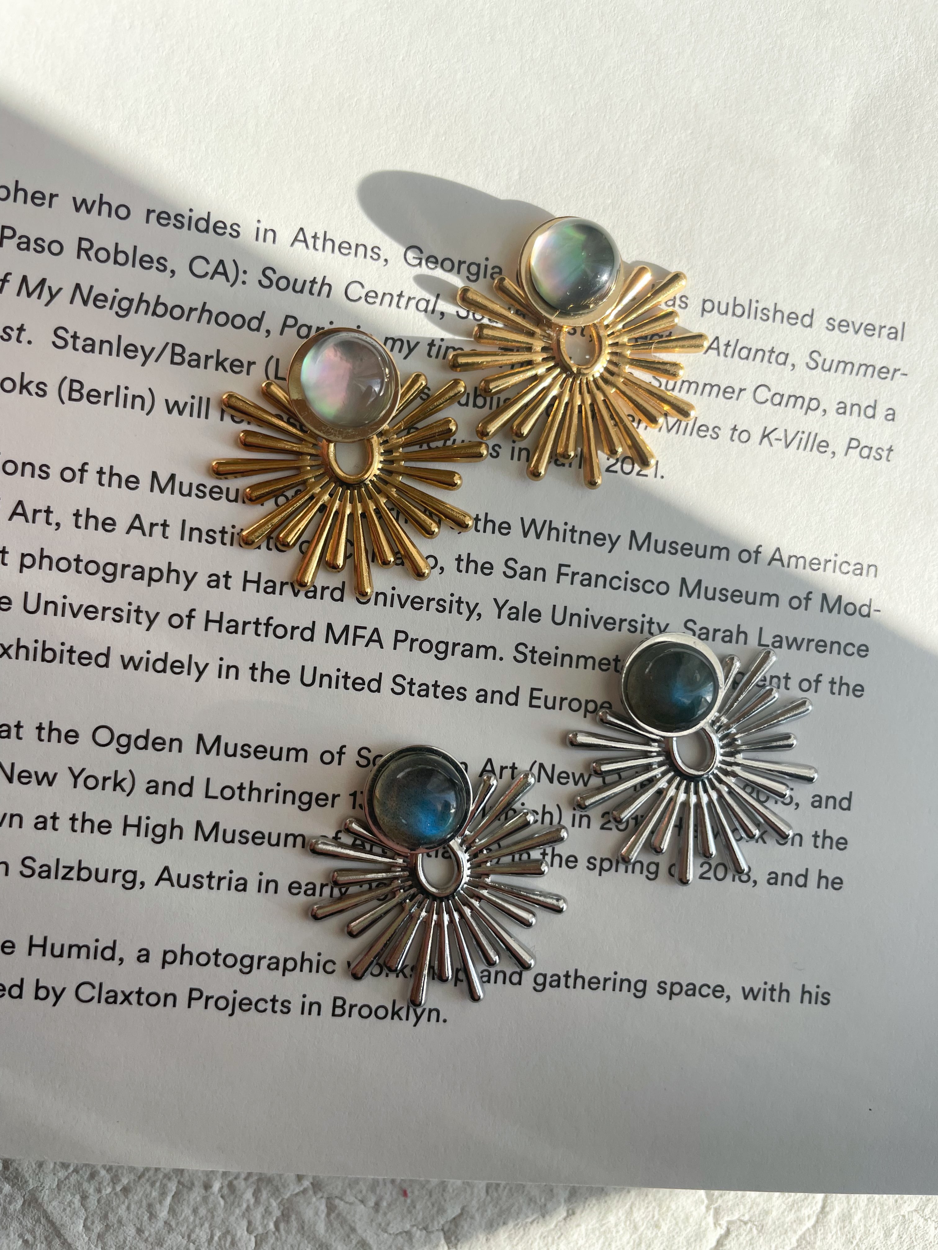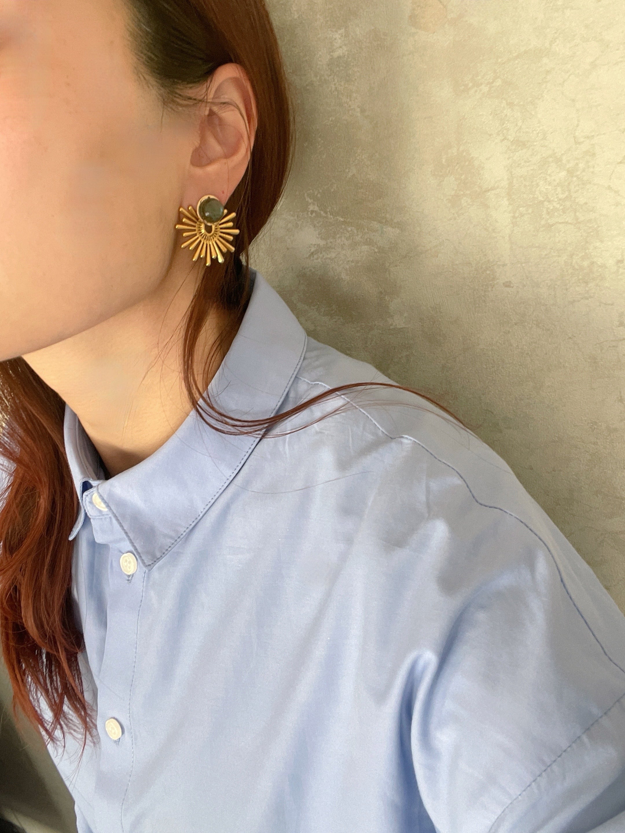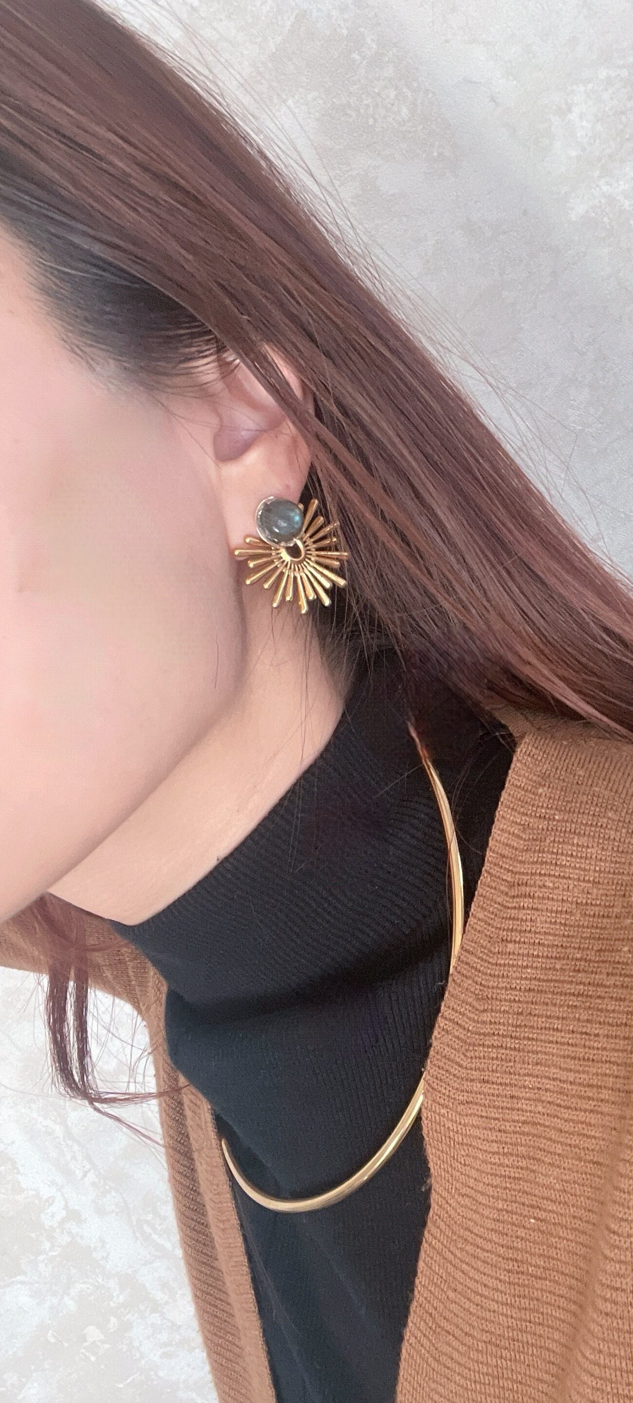 3種類の魅力的な天然石をあしらった太陽の様なインパクトのあるパーツを合わせました。