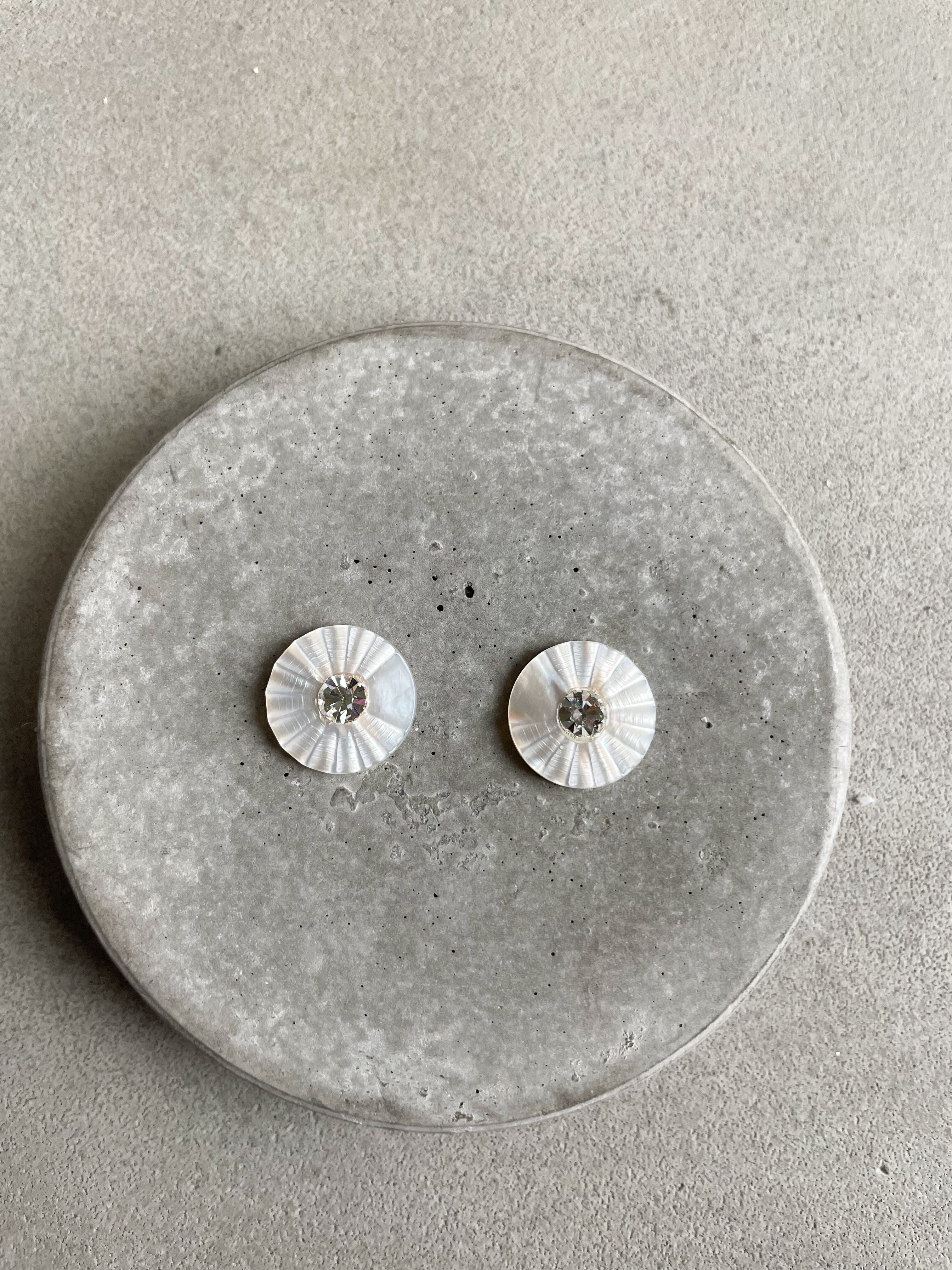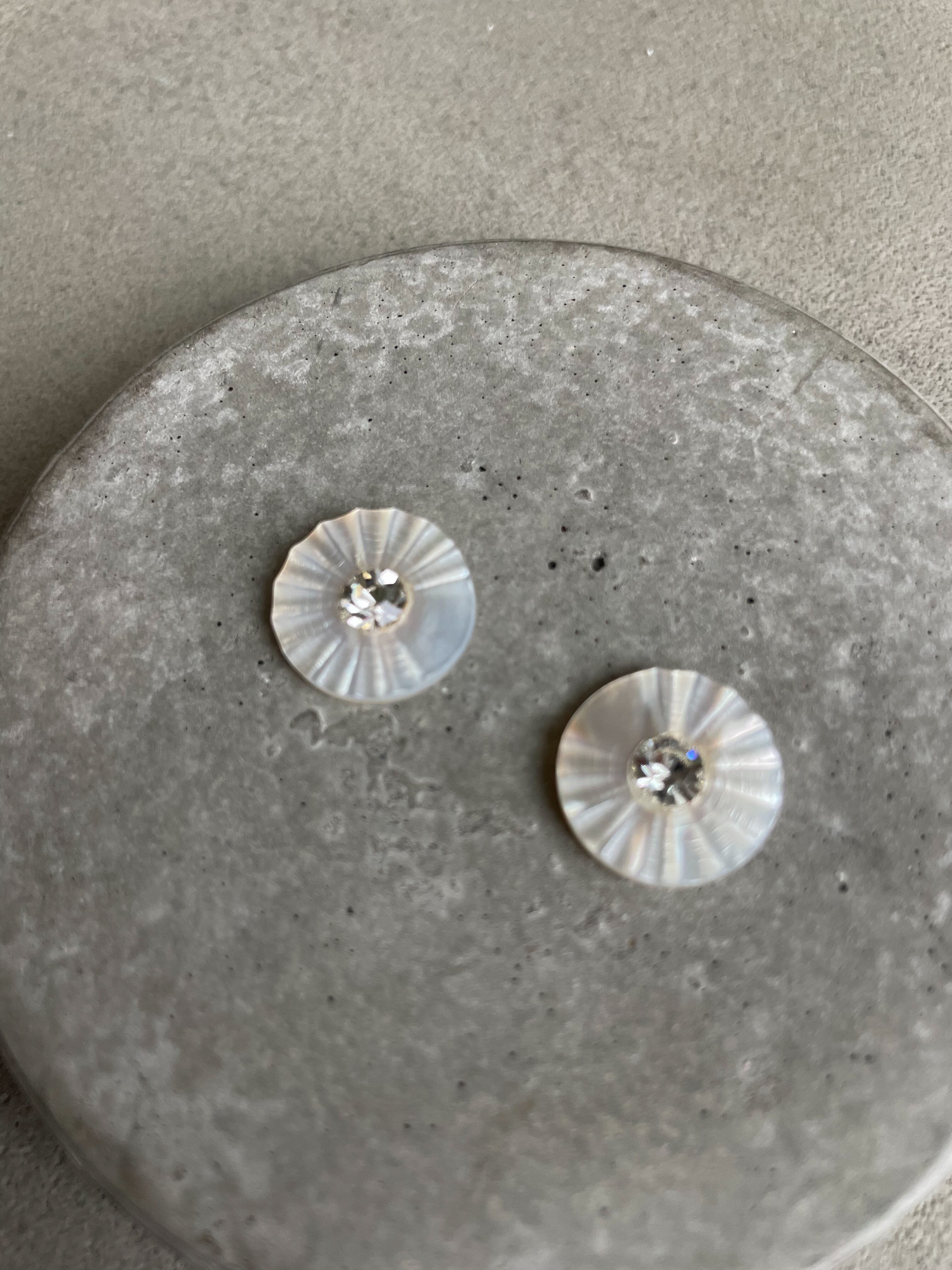一粒のラインストーンにシェルの輝きとラインが入り花の様なデザインです。