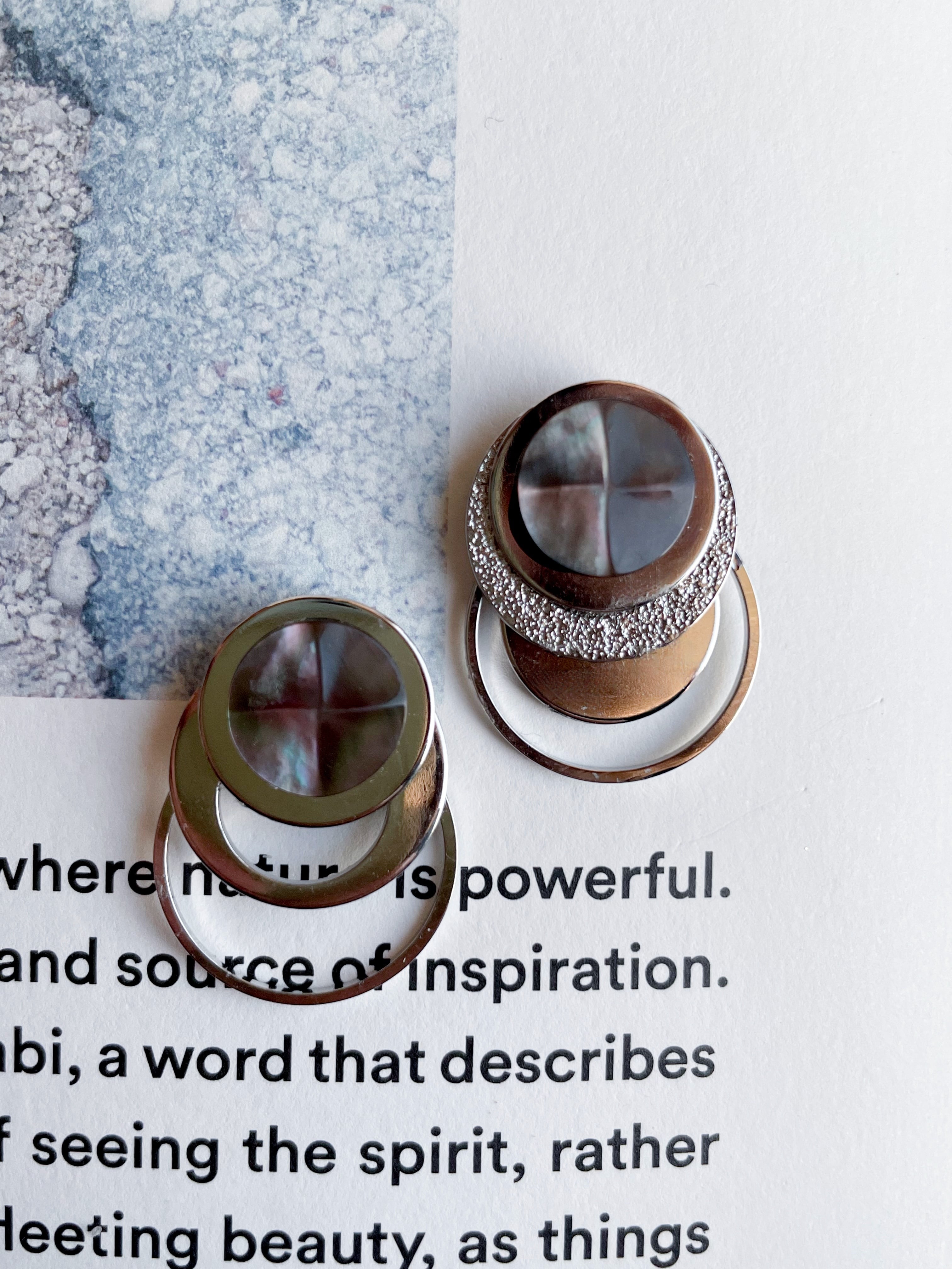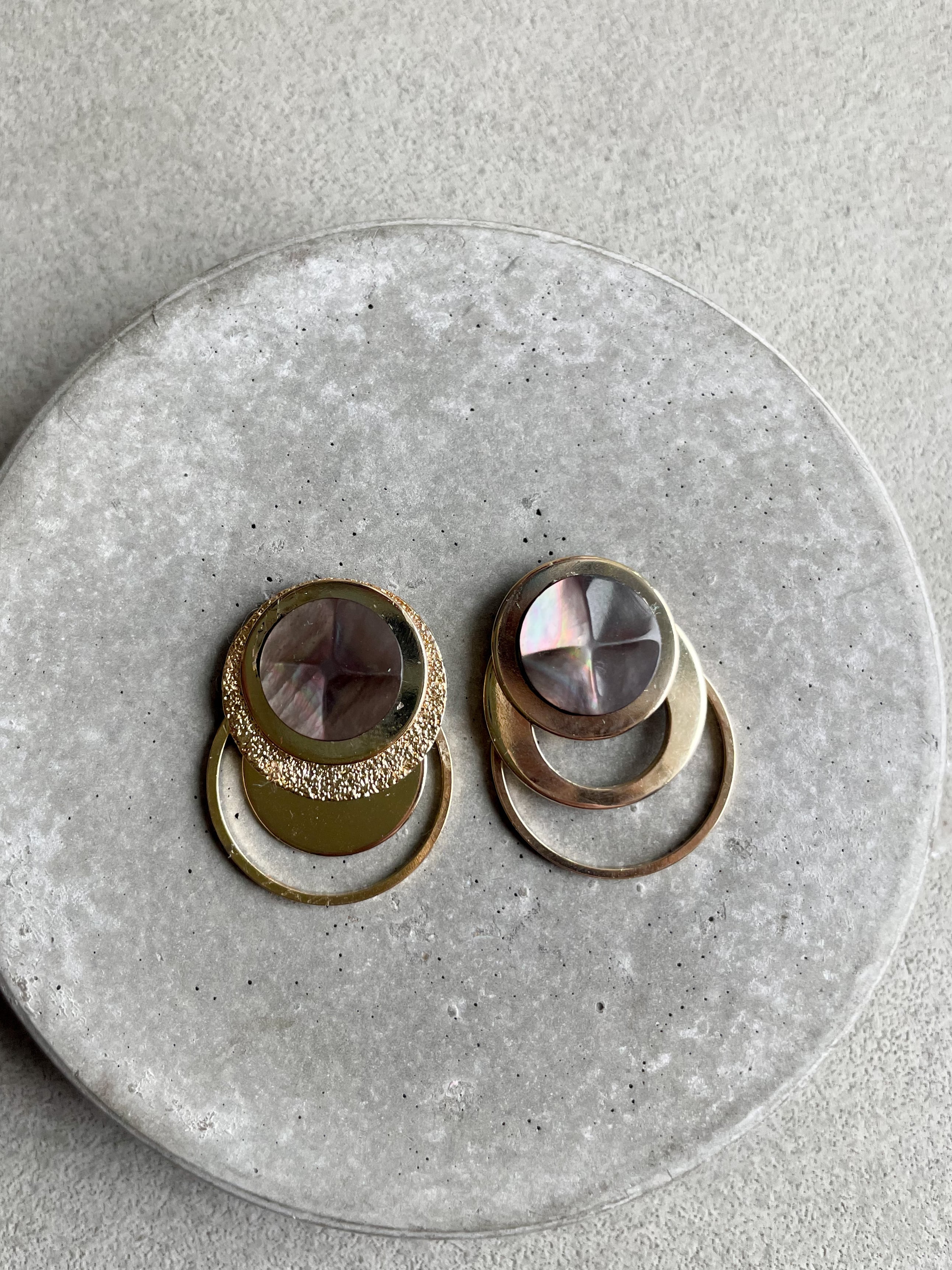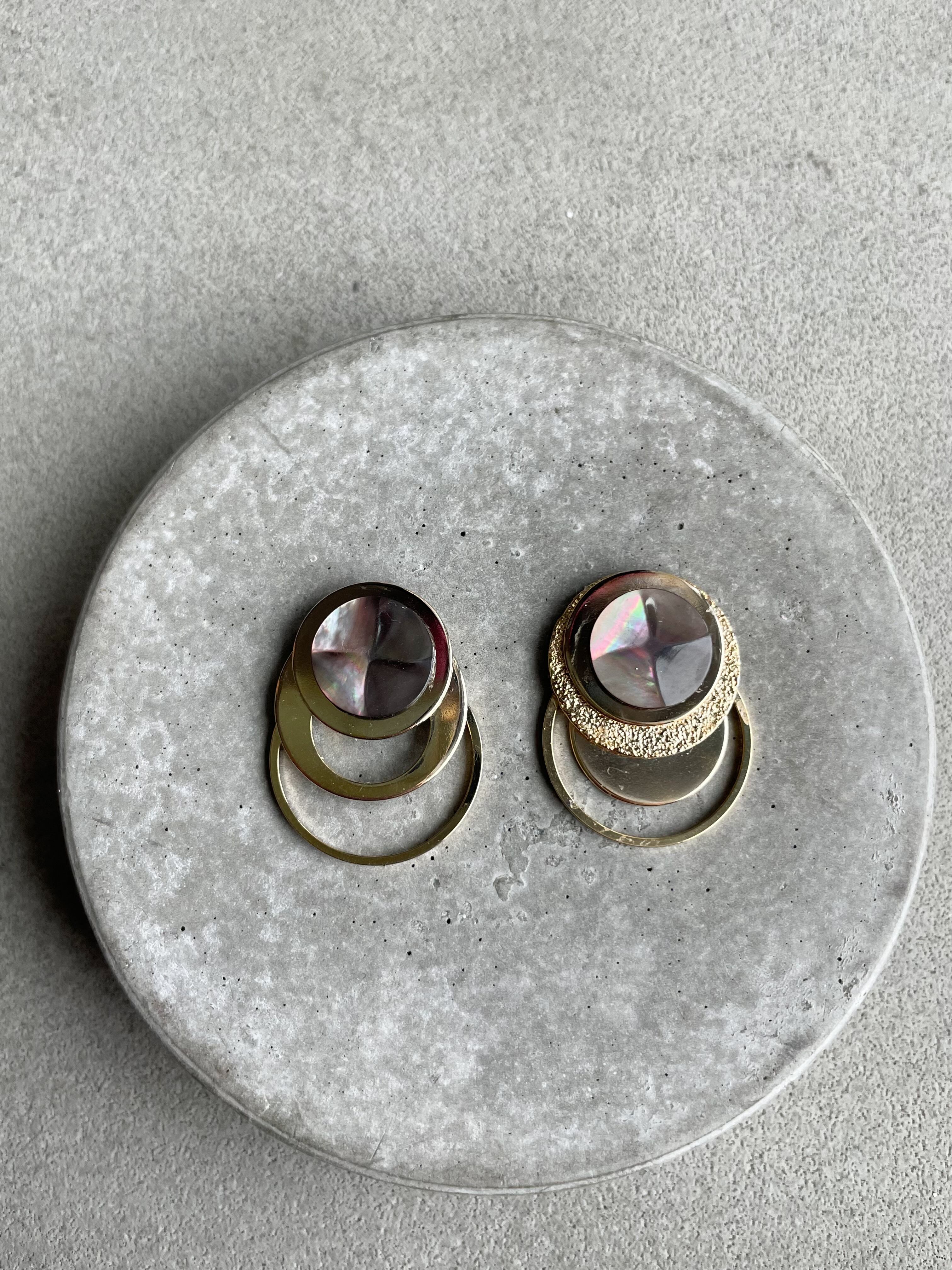 メタルプレート、スターダスト加工されたプレートなど様々な円を組み合わせたデザインです。